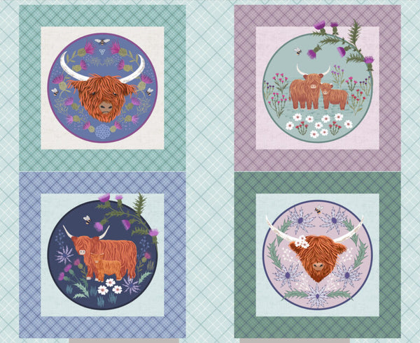 An adorable Pillow Panel adorned with Highland Cows from the 'A Celtic Summer' Collection.
