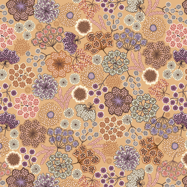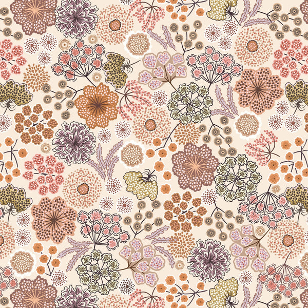 This fabric collection is designed to celebrate Autumn. A season that brings a particular kind of magic with its crisp air, vibrant foliage and the stunning array of flowers that bloom during this time. These Autumn flowers not only bring warm colour to the landscape but also symbolise resilience and beauty in the face of changing seasons.